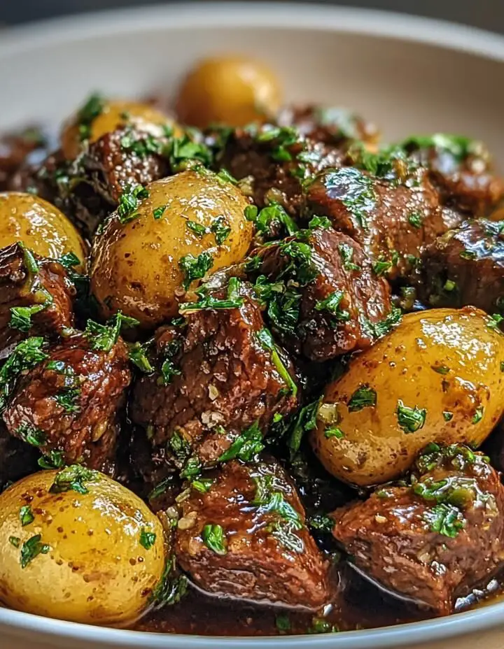 Slow Cooker Garlic Butter Beef Bites & Potatoes